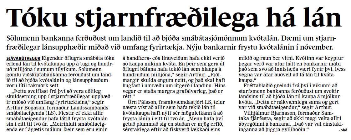 En á forsiðu Fréttablaðsins í dag var þessi frétt sem dregur allverulega úr vægi orða Hjörleifs, hafi þau eitthvert vægi yfirhöfuð. Það sem fram kemur hér er einungis eitt örlitið dæmi af ótalmörgum.