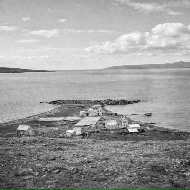 Læknabústaðurinn á Hólmavík, litla húsið til vinstri um 1900 og lítið sjúkrahús var síðar reyst við húsið árið 1910.